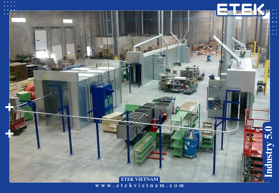 Các hệ thống dây chuyền sơn tĩnh điện hiện đại thường được tích hợp với nền tảng giám sát dữ liệu sản xuất.